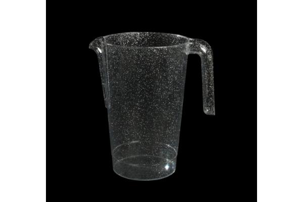 קנקן ניצוצות כסף 24\1. קנקן שקוף עם ניצוצות פלסטיק, מיוחד ואלגנטי, מתאים לאירוח.
